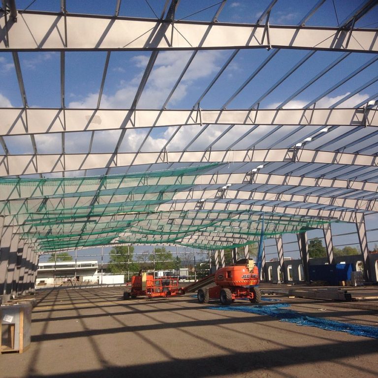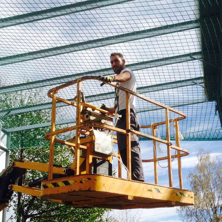 Montage eines Schutznetzes als Vorbereitungsmaßnahme zur Montage einer Lichtkuppel